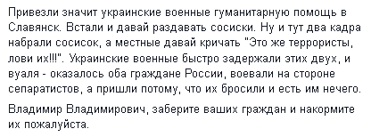 У меня такая странная мысль о том. почему разрешили колонне войти в Донецк. Чтобы их вылечить от про-российскости, ностальгии по СССР, дать пощупать раиссию.