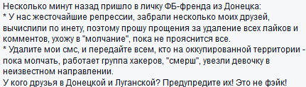 Сегодня моя мама разговаривала с родственниками близкими из россии,липецкая обл.Так сказали,что они ВСЁ знают, ТЕЛЕВИЗОР смотрят, и у них там очень много беженцев из Славянска и рассказывают "ужасы-ужасы"....это все бЕндеры переодетые творят и людей в плен берут и похищают и всех убивают. и слушать аргументы не хотят,хотя никто и не старался особо их переубедить( это если б по 50т,да под соленый огурчик ,да до утра-то,может быть,что-то и получилось доказать),очень звали нас приехать прятаться,после не удачных попыток сказали: ну хоть детей привезите.... мы ответили :что мы лучше во Львов поедем если что(тьфу-тьфу-тьфу)...обижаются что Украина предала россию ну и в том же духе......