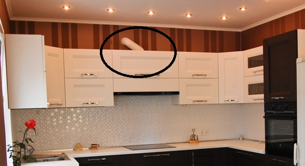 Кроме того, подозреваю, что труба вытяжки на самом деле не так заметна, как на фотографии. Ну разве что хозяева специально становятся на табуреточку, чтобы на эту самую трубу полюбоваться.