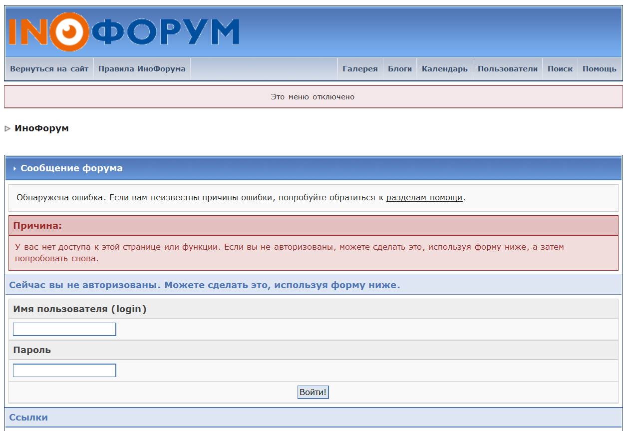 Я на ваш форум могу зайти только с Мозилы, остальные браузеры блокируются. На форуме возможно блокирует файрвол или ошибки в шаблонах.