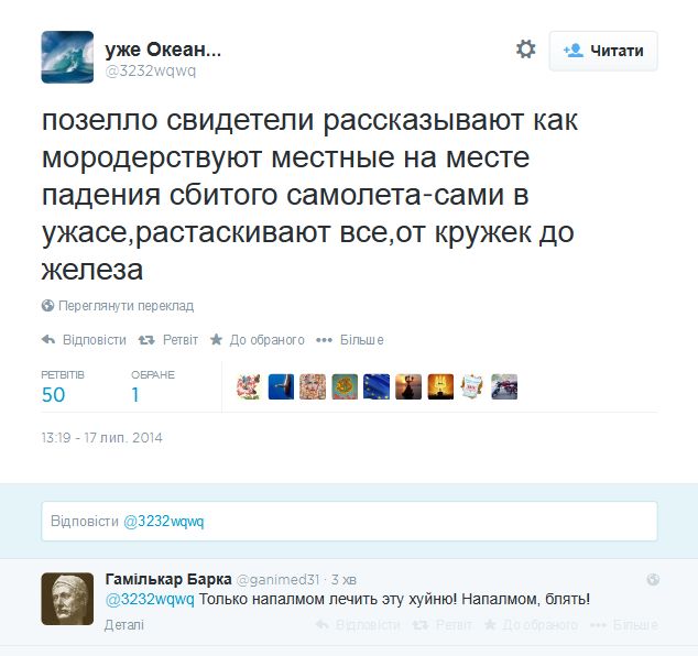 Перевод на английский телефонных разговоров террористов о сбитом Боинге-777. Это надо передать всем друзьям в ЕС, США и т.д.: