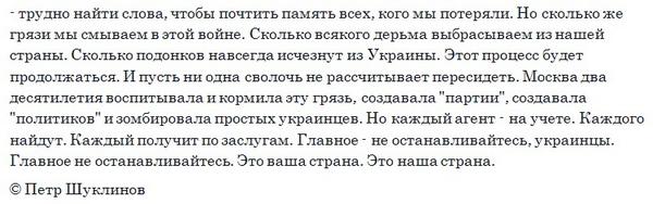 -Ты дыви,як нас завели, як ото собак, га. Стоїмо, загривки подняли, зубами скрегочемо, от жаль, не на тех спустили, треба ж було олигархив рвать, а не шахты бомбить да народ убивать.