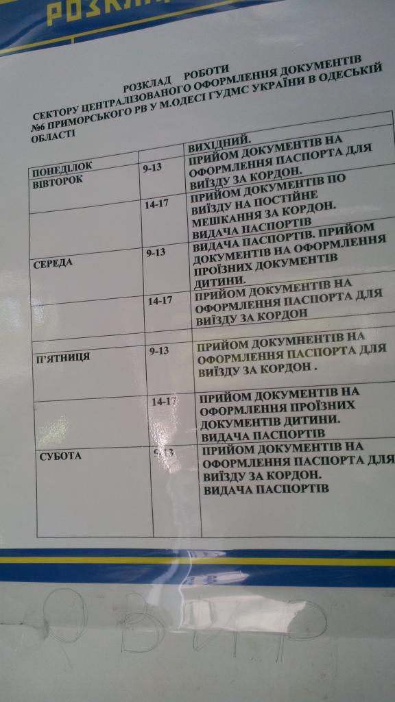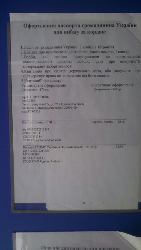 1.Госпошлину оплачивайте строго того района, в котором подаете документы. Если подаете в Суворовском, то и пошлину оплачиваете СТРОГО СУВОРОВСКОГО ОВИРа, независимо от района вашей регистрации. У меня во вторник из-за этого была проблема. Они с огромным удовольствием возьмут с Вас 490 грн, но если хотите за 377,15, то приносите сразу оплаченные 3 квитанции, попросите у них бланки анкет и заполните сами.