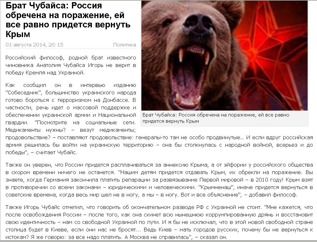 Брат Чубайса: Россия обречена на поражение, ей все равно придется вернуть Крым