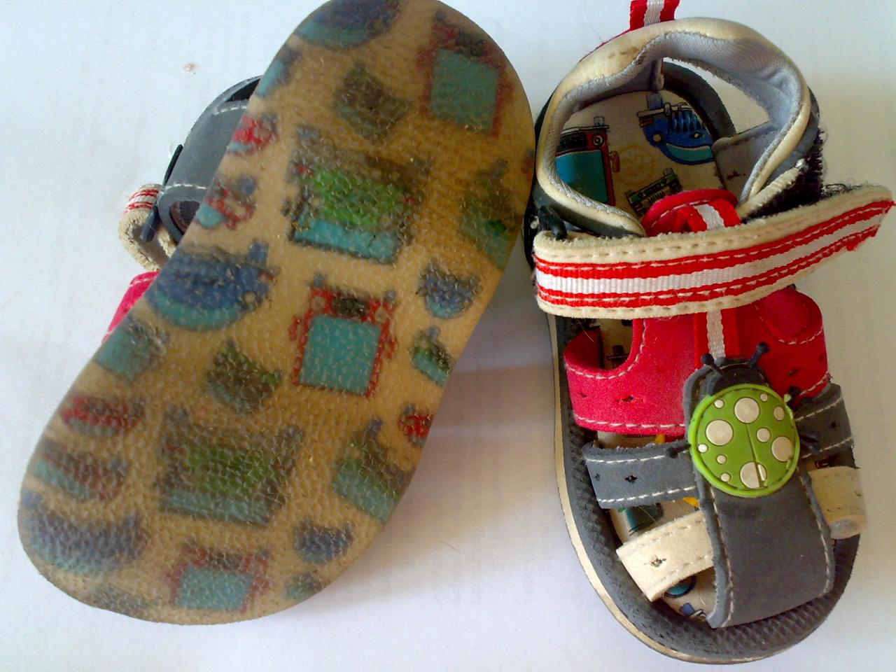 9. Сандалики с жучком, яркие, удобная подошва с каким-то шершавым напылением . Стелька без супинатора, 22 размер, 13,5-14см. по стельке. Подклеены подошвы у носка, остались пятнышки от клея. На масло Джонсонс http://www.tavriav.ua/maslo-johnsons-200-ml-dit.-z-lavandoyu/p7686/ Утопали по дорожке