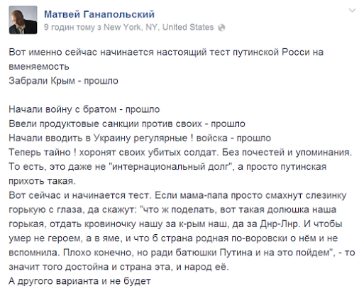 Родина опять - в сто двадцать пятый раз! - от своих солдат отказывается. В этой стране не меняется ничего и никогда, - российский журналист