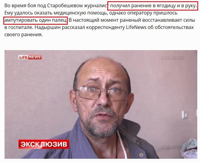 Журнашлюх AnnaNews Игорь Надыршин получил ранение в жопу и руку. Палец ампутировали, жопа на месте. пока ...