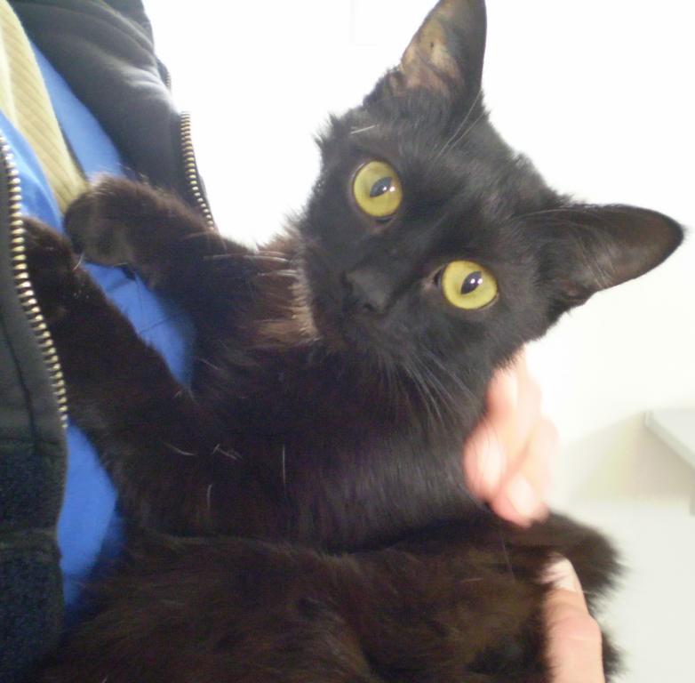 Тоже новенький котенок. Возраст около 3-х месяцев. Весь черный с шоколадным отливом. Очень красивые глаза светло-чайного цвета.