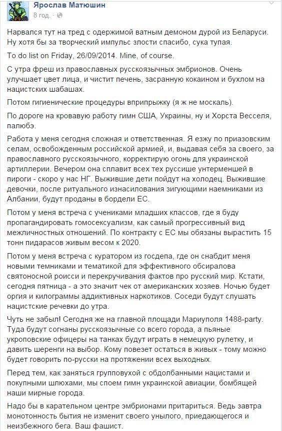 Укробэ, быстрее на штурм! Скарее! Мабелезавать армийе! Мабалезавать менестерцтва! Мабелезавадь дебудадьё! Мабелезавать камиры и все говноканалы круглосуточной лжи! Аткрыть все гроницэ для вакцыны! Зилёны свет на всех пунктах пропуска! Вперед! На защиту укропыша!