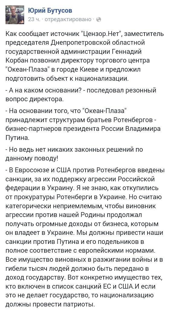 Ви тепер розумієте, чому знищено контрснайперські комплекси, аеророзвідку? Чому розформовано танкову бригаду в Овручі й відведено війська? Вам ясно, чому розміновано всі мости, дороги, лінію розмежування та Чонгар?