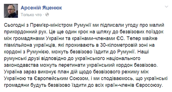 Где именно Яценюк назвал этот порядок передвижения "Новым достижением"?