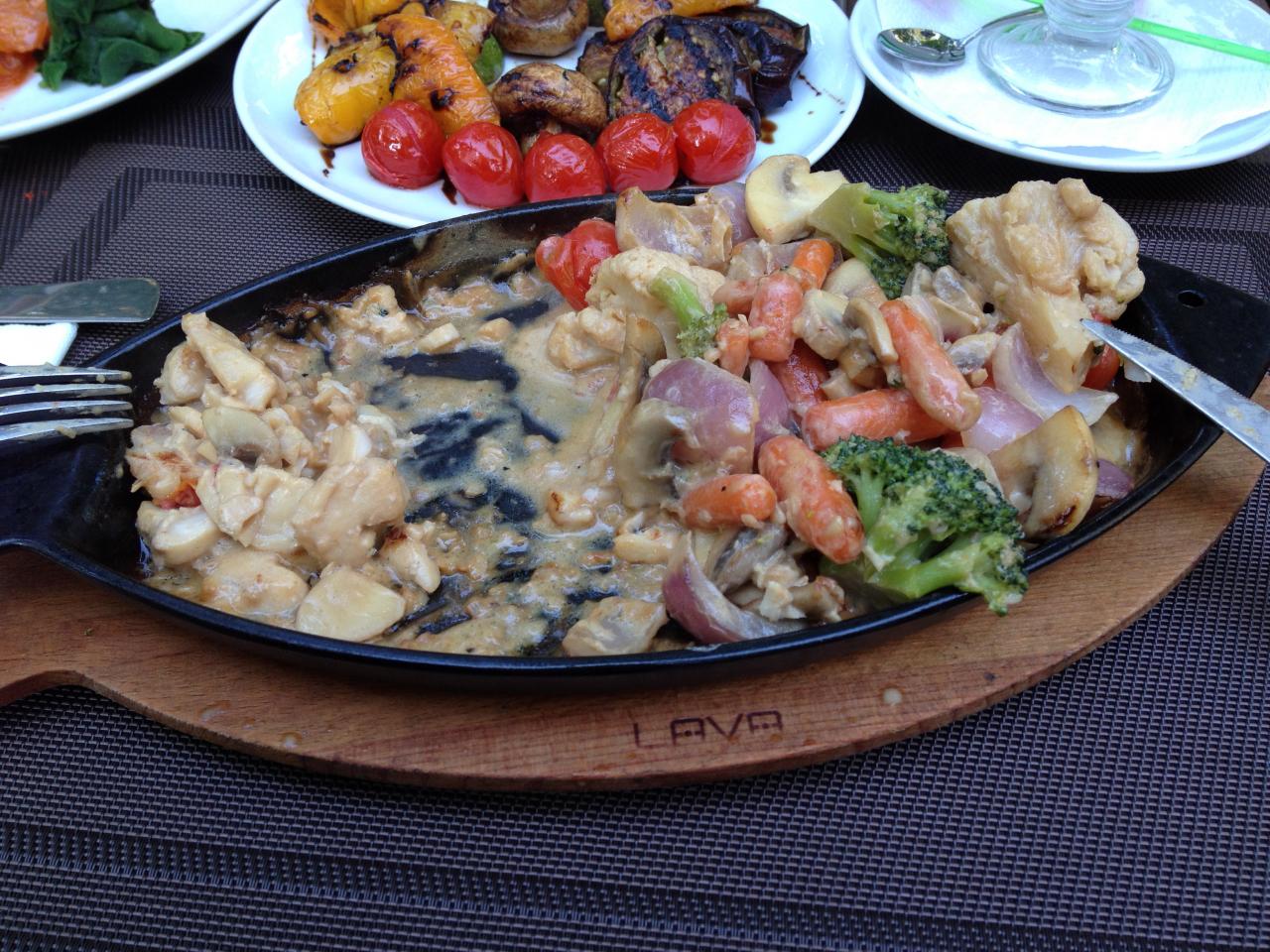 Сегодня с мужем посетили сее дивное местечко. Из заказанного: карпаччо, крем-суп грибной, овощи гриль, семга гриль и филе судака в сливочном соусе. Всё было гуд, до момента когда мне принесли филе судака в сливочном соусе. Сразу смутил вид блюда, т к сверху было очень много крупно порубленного лука, вперемешку с грибами, морковкой, брюссельской и цв. капустой. Жалею, что не сфотографировала начало. Ножиком разворотив эту кучу овощей, насобирала по всей сковородке кусочки рыбы порезанные слайсами(( на блюде разделила рыбу и овощи. Пригласили администратора, она объяснила, что рыба в блюде есть, её вес в чистом виде до обработки весит 100г . Ох...! выкрутилась! Стоп, но блюдо называется "филе судака в сливочном соусе и мелким шрифтом с цветной капустой, брокколи, черри и шампиньонами откуда морковка и лук? То есть филе судака главное! остальное добавки, а в данном блюде все наоборот. Ответ "ну хорошо, мы вам не внесем в счет это блюдо." Блюдо вернули.