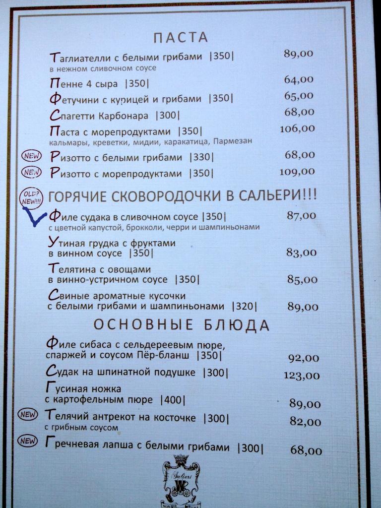 Сегодня с мужем посетили сее дивное местечко. Из заказанного: карпаччо, крем-суп грибной, овощи гриль, семга гриль и филе судака в сливочном соусе. Всё было гуд, до момента когда мне принесли филе судака в сливочном соусе. Сразу смутил вид блюда, т к сверху было очень много крупно порубленного лука, вперемешку с грибами, морковкой, брюссельской и цв. капустой. Жалею, что не сфотографировала начало. Ножиком разворотив эту кучу овощей, насобирала по всей сковородке кусочки рыбы порезанные слайсами(( на блюде разделила рыбу и овощи. Пригласили администратора, она объяснила, что рыба в блюде есть, её вес в чистом виде до обработки весит 100г . Ох...! выкрутилась! Стоп, но блюдо называется "филе судака в сливочном соусе и мелким шрифтом с цветной капустой, брокколи, черри и шампиньонами откуда морковка и лук? То есть филе судака главное! остальное добавки, а в данном блюде все наоборот. Ответ "ну хорошо, мы вам не внесем в счет это блюдо." Блюдо вернули.