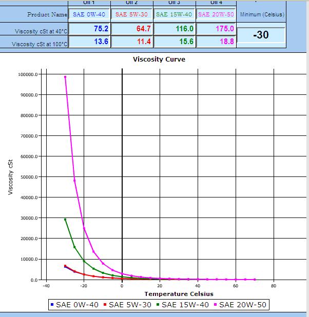 Зная температуру, где вязкости одинаковы, можно судить о том при какой температуре одно масло предпочтительней другого, и делать выводы относительно предпочтительности заливки одного из видов масел.