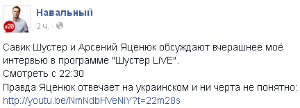 А НИЖЕ - пост навального и видео Шустера с Яценюком об интервью Навального.