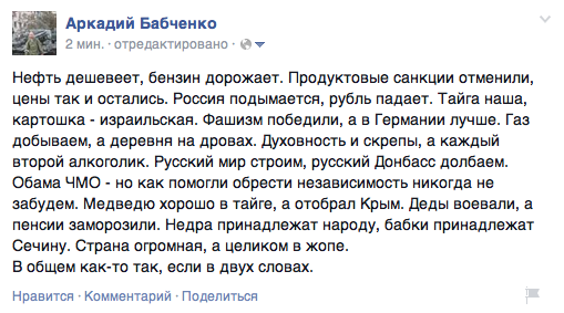 Путину!!!Кстати, весьма вероятно, что парламентскую комиссию по делам СН и, извини, Г, возглавит некто Дмитро Ярош. И тебе придется принимать его в Москве во главе официальной украинской делегации. Владимир Владимирович, ты уж не обессудь, но это не только твой выбор, но и выбор украинского народа. И, как докладывают спецслужбы России, как воспитанный человек, Дмитрий уже оставил не одну свою визитную карточку на российской земле. Вот только волнует один вопрос: а в каком зале ты будешь принимать Дмитрия? А если в состав делегации он возьмет еще и Борислава Березу? Володя, ты не горячись. Охолонь. У нас тут тоже с ними проблема, Евгений Кузьменко: «Вот, теперь в Раде мы будем постоянно путать Дмитро Яроша и Борислава Березу! Мужики, у вас совесть есть?» Единственное, что точно знает вся Украина, – они оба из «Правого сектора». Теперь, думаю, и вся Россия будет знать. Ну, в самом деле: не все же время принимать тебе только царевых и повалий!