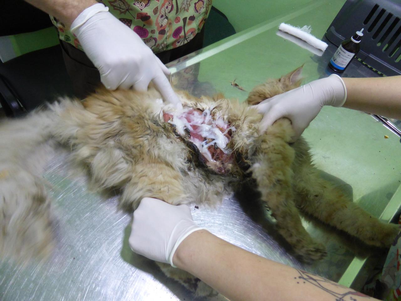 вот таким его принесли в клинику (в процессе очистки раны):