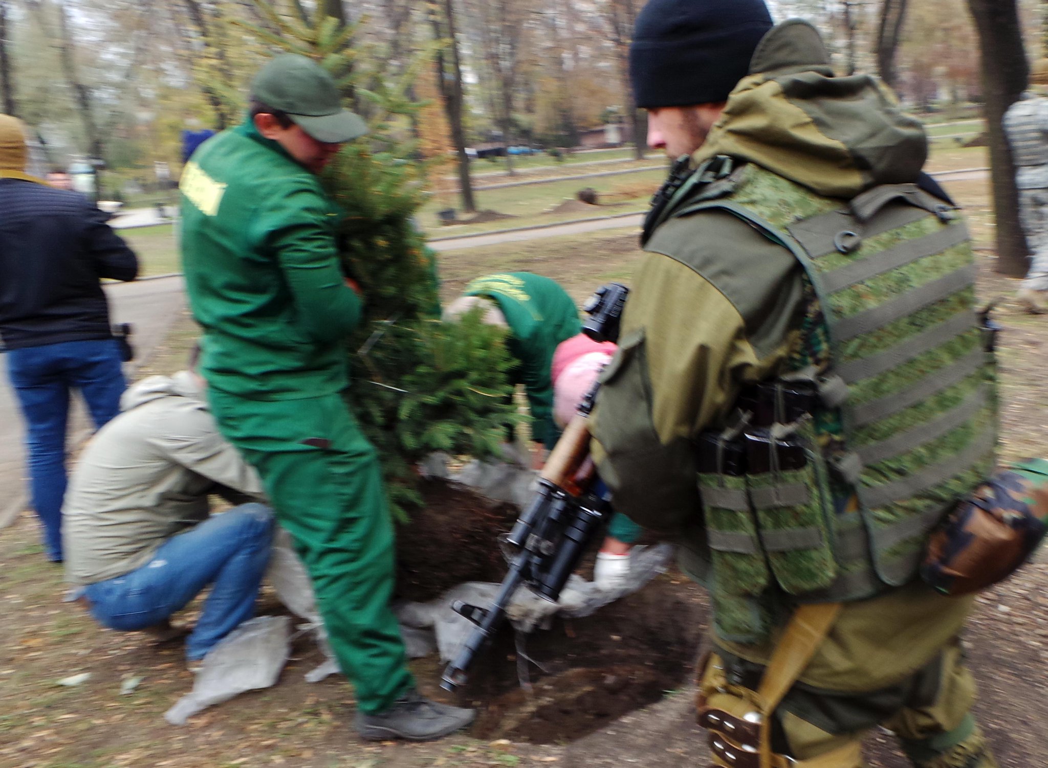 Субботники в Донецке теперь проходят так. Фото сделано 1 ноября 2014 года