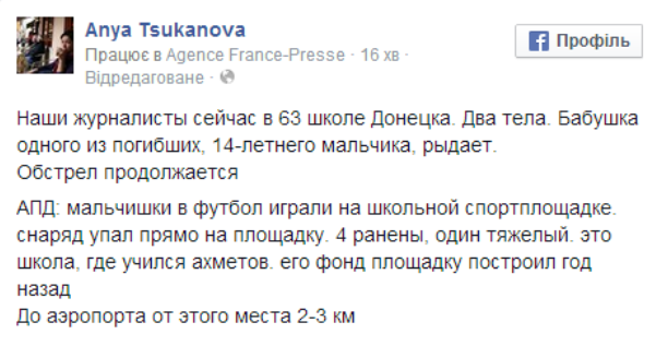 В твиттере один из очевидцев написал, что за 20-30 минут до этого, со стадиона стрелял минометный расчет сепаров.