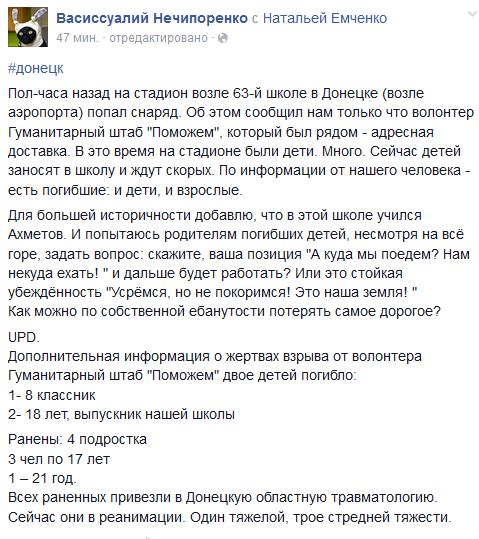 Пореченков? Меня возмущает то, что актер из России решил приехать в чужую страну для того, чтобы пострелять по людям, как на сафари. А тем более у человека с надписью «Пресса» не должно быть оружия в руках вообще. То, что он сделал – не поступок мужчины. После этого, вспоминая фильмы, в которых он играл настоящих сильных мужиков, понимаешь, что он полный ноль, никто, беспозвоночная личность. Я ему уже привет передавал через «Громадське ТВ», не дай бог ему где-то встретиться с нами. Наши ребята, услышав эту историю, все очень расстроились: придется фильмы не смотреть, а те, которые есть на ноутбуках, поудалять. Они такое не восприняли, и прощать не хотят. Кстати, в глазах у Пореченкова был явный страх, когда он там на камеры позировал. Как испуганная собака на тех «сепаров» смотрел. Если ты такой воин, то почему в шлеме с надписью «Пресса»? Это вообще дикая вещь. Еще прицельно стрелял, а потом начал отказываться, что стрелял холостыми, по мишени. Откуда на войне холостые патроны, тем более для крупнокалиберного пулемета? На видео четко же видно, что это бронебойно-зажигательные. Так что этот Пореченков, когда еще раз приедет сюда, то, если он не слабак, пусть предупредит, а мы его встретим …