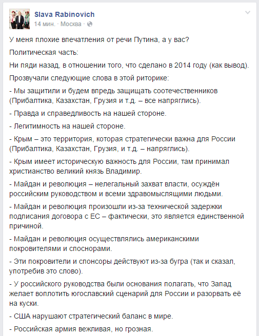 С.Рабинович о речи Х..ла. Кратко. Для тех, кто не слышал.