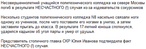 2. В Москве учащийся колледжа погиб из-за издевательств сокурсников