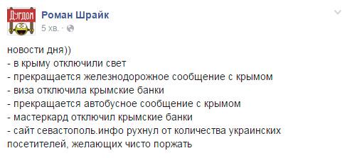 Мы здесь, в России, противостоим каким-то немыслимым и бессмысленным санкциям против нас, а вы на своём "Доме 2", у нас под носом украшаете ёлки сине-жёлтой мишурой и рисуете мультяшной Бузовой сине-жёлтые тени, а ваши девки в разгар Майдана красуются в Инстаграме в украинских национальных головных уборах.