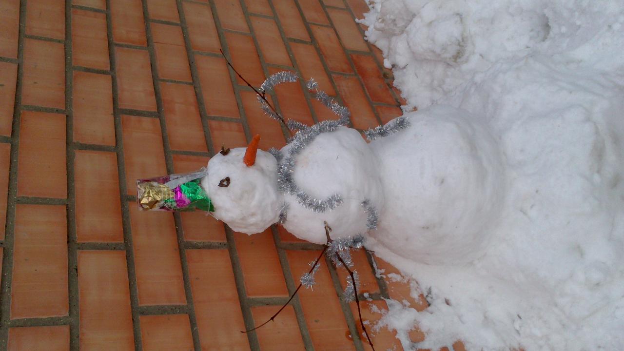 Мы сегодня смогли выехать только за калиткудорожки у соседей не расчищены..зато я впала в детство и пока Анюта тихо-мирно спала в коляске я лепила снеговика...каличный конечно получился,зато мамка ощущала себя скульптором