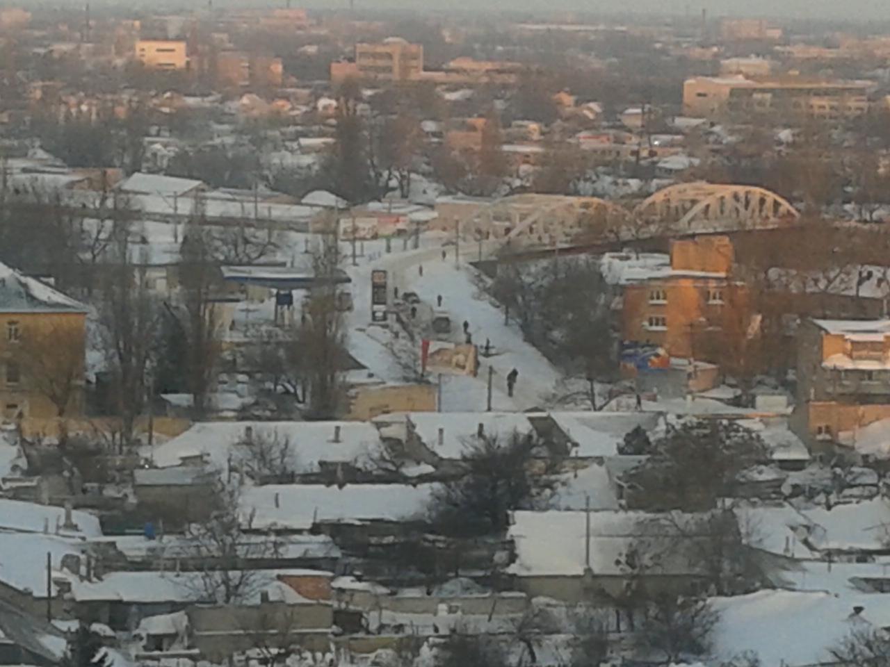 По Заболотного от Днепро до сахарова трактор расчистил одну полосу, под снегом лед. Дошел до стоянки, откапал машину завел, заглушил и пошел домой.