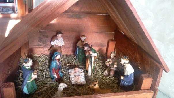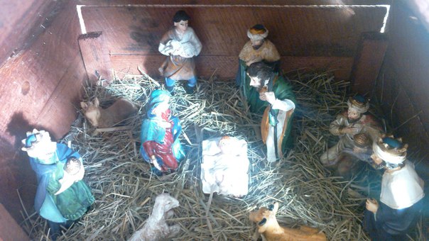 У нас тоже уже стоит нарядная и с вертепом. )) и маленькая в детской с детским вертепом из PlayMobil. В вертепах Христоса еще нет - не родился )