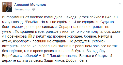 По потерям у сепаров не уточнял - всё равно сейчас никто точной цифры не знает и не скажет. Важно тем, кто переживает и следит за ситуацией, знать: идёт обычное жёсткое боевое столкновение, которых уже было немало.