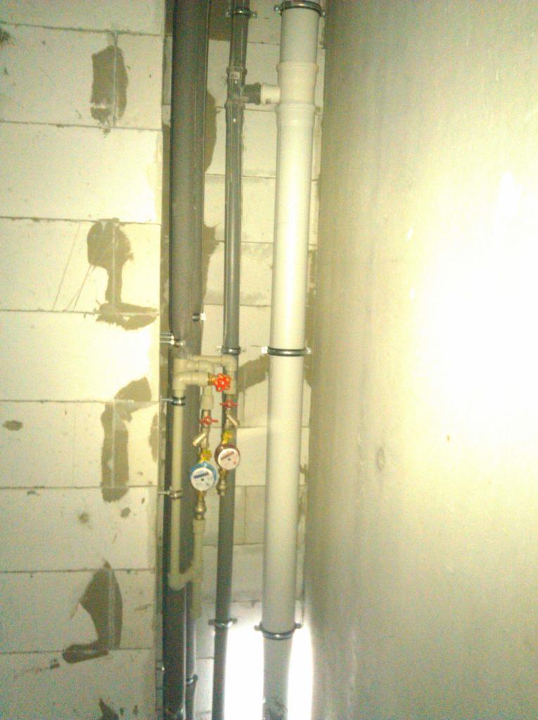 В ванной проходит стояк со всей сантехникой, горячая вода, холодная, от крана холодной специально отведена трубя для пожарного крана, (рукав выдается «Будовой»).
