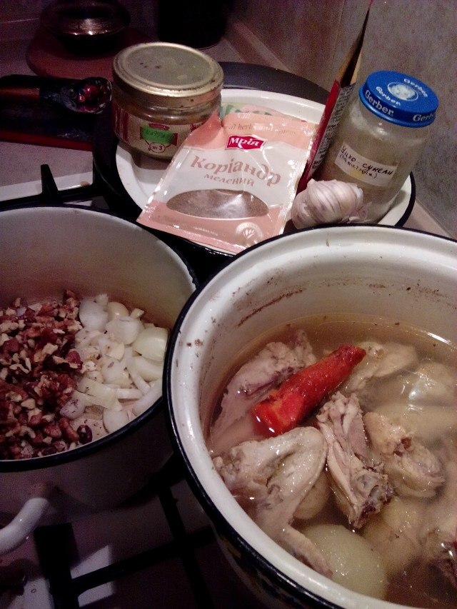 Всем доброго вечера. Я уже приготовила все на Сациви, сто лет не делала, волнуюсь, надеюсь получится...