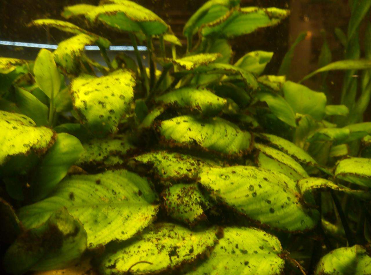 ID:	9307094Ребята, подскажите плиз. У меня Анубис огромный куст на весь аквас 90 см. Почти весь покрылся чёрным налетом.(( аквас живёт своей жизнью т.е. рыбы не прихотливые, других растений нет. тесты и пр. не делала. Что это и как помочь кустику, если это возможно?