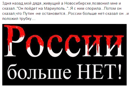 Вчера в Фейсбуке выкладывали, что народ в Мариуполе един, разно чтений о трагедии , нет. Все знают и понимают кто расстрелял Мариуполь. Но в то же время попалось сообщение Геращенко где он критиковал пост Цаплиенко, в котором тот написал, что одна его знакомая видела, через открытые двери кабака, группа мужчин подымала бокала и кричала За Россию!