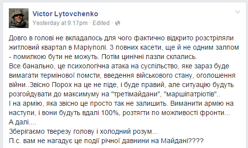 Виноваты все. И мы, что допустили такой сценарий, и в России, что пошли против брата. Рейтинги? Рейтинги это Крым, это пропаганда против запада и т.д.. У других это патриотизм, наращивание злобы на патриотизме. Я люблю патриотизм, я сам патриот Украины, готов отдать за Украину жизнь, но не готов отдать жизнь моих близких. Вот так. Вообще умирать можно только ради своих близких. Для меня родина и есть близкие люди и люди приближенные к ним, наши герои, люди которые славят мою страну и соответственно меня. За сброд который готов продать свою родину за пачку гречки я воевать не буду, а за детей которые играют на детской площадке буду. Это в моем понимании патриотизм.