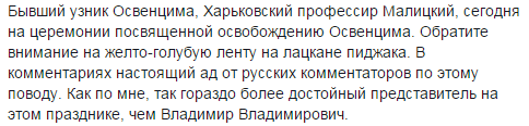 Весьма своеобразным было выступление российского президента Владимира Путина на мероприятиях, посвященных памяти жертв Холокоста.