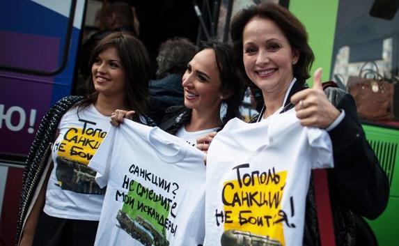 Дошло до того,что и актёры,в частности Ольга Кабо,известная одесситам по снятой на Одесской киностудии в 1988 году комедии «Приморский бульвар»,присоединилась к акции против санкций Запада и надела футболку с изображением ракетного комплекса с надписью «Тополь» санкций не боится».Разве это нормально???