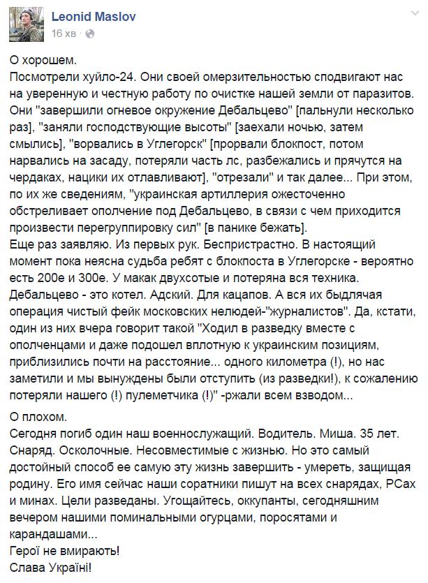 ну и за шо тогда пиздели в фейсбуке за уничтожение авиации,далбаебы там можно одну точку у пустить и порешать этих летунов