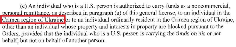 Рашисты сильно радуется, что США разрешили переводы в Крым.Но переводы разрешены только в украинский Крым,а пока зась