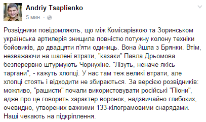 31 января, по предварительным данным, 49 боевиков были ранены, а 16 уничтожены. В районе Дебальцево украинские патриоты обезвредили три пушки.