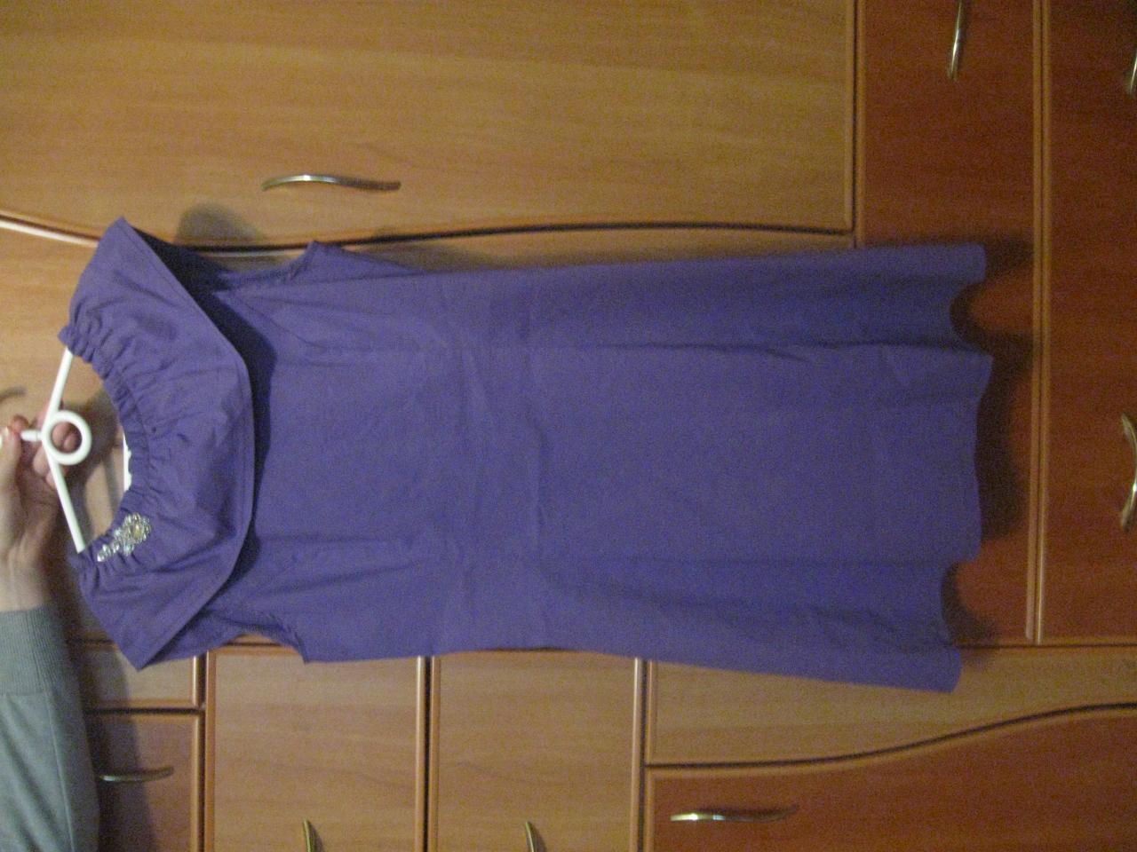 Фиолетовое платье. На спине вырез "уголком".Одели один раз.