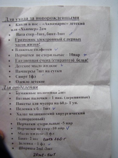 Зато нашла я список 5-тилетней давности что просят для послеродового им принести, уже собрала, все подешевле, чтобы муж не бегал и чтобы у них в три дорога не покупать, а список в детское потерялся, если у кого остался, напишите пожалуйста