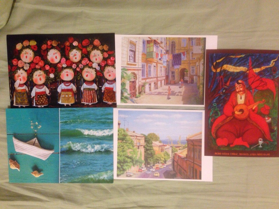 Марки купила буквенные, авиа, 16 грн с копейками (0.70 центов по курсу считаем) открытки купила в КС на Бунина. И часть заказала в интернете.