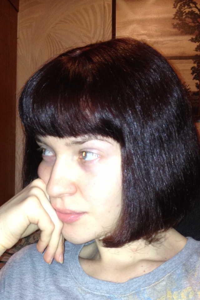 Вот кстати что у меня с повторным окрашиванием Колор Люксом вышло, я же все фото собиралась выложить. Очень интересный цвет: на свету выражено каштаново-красный, на фото со вспышкой чистый шоколад, а иногда и вовсе смотришь - ну натурально чёрный. Жених вчера прилетел, был в шоке, мягко говоря....последний раз он меня видел длинноволосой, рыжей и с кудрями![]()