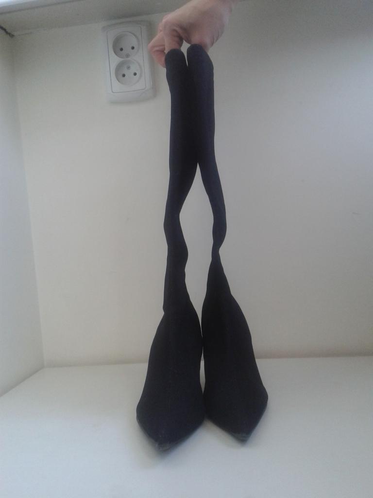 Лот № 1. Сапоги (Италия) черные, полированная кожа, внутри полностью кожаные (деми), кожаный каблук 10 см. На узкие "икры" и ножку, б/у. На ножках смотрятся классно! 400 грн.Торг!
