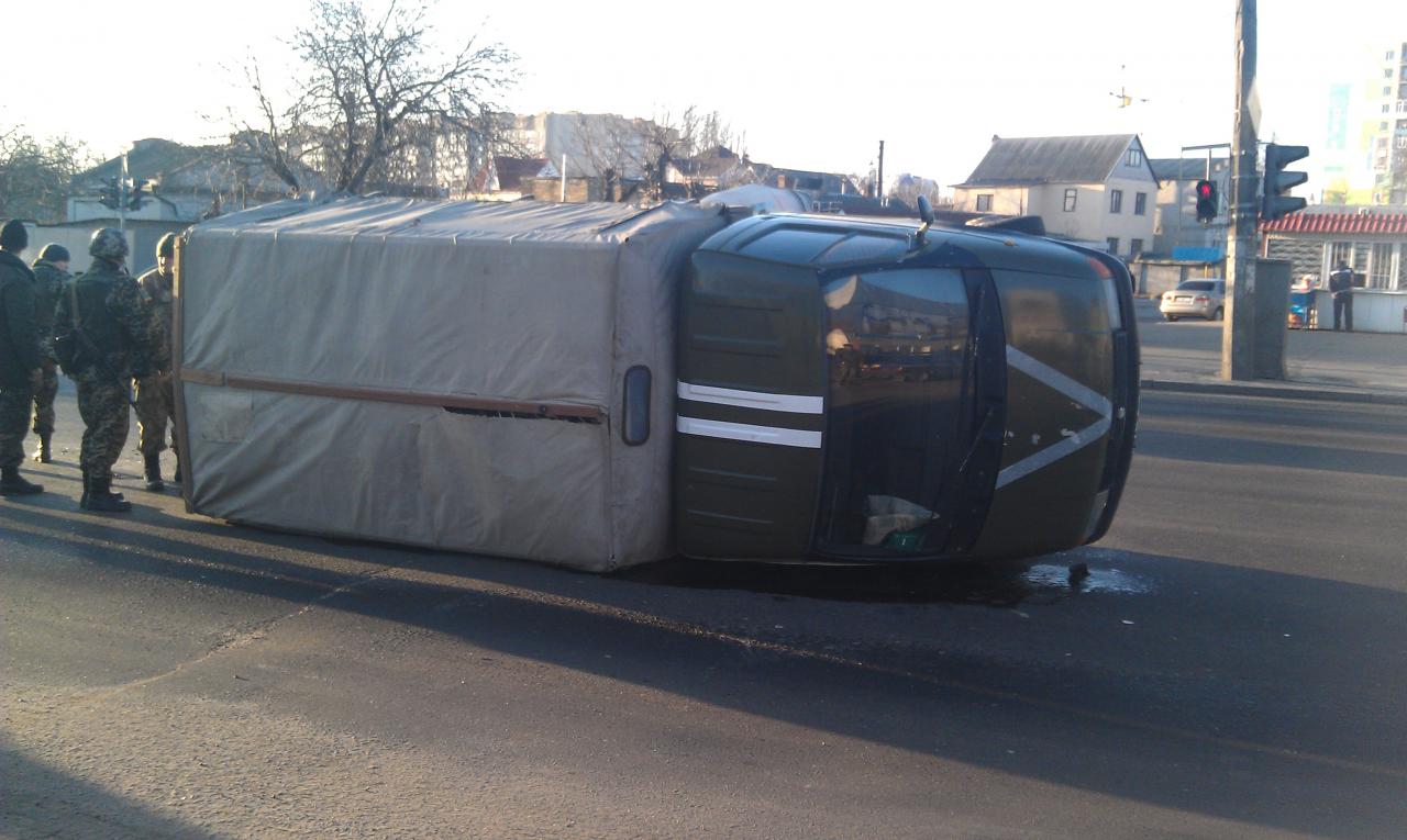 На перекрестке Грушевского/Пестеля сильная авария. Лежит перевернутая пограничная Газель, недалеко от нее легковой Хюндай с разбитой мордой.