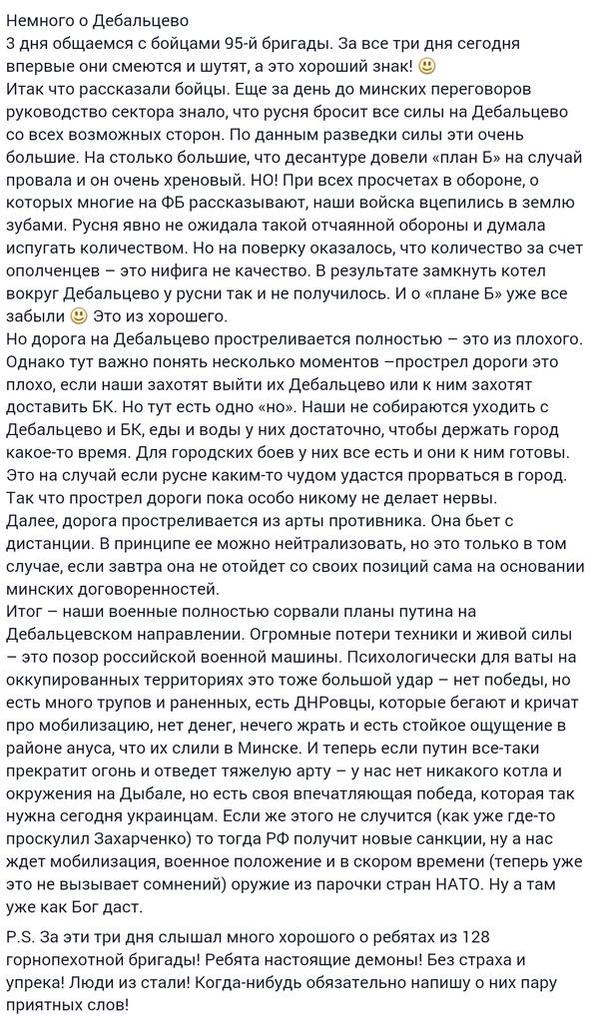 Ви тепер розумієте, чому знищено контрснайперські комплекси, аеророзвідку? Чому розформовано танкову бригаду в Овручі й відведено війська? Вам ясно, чому розміновано всі мости, дороги, лінію розмежування та Чонгар?
