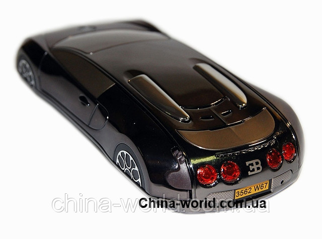 Bugatti Стильный мобильный телефон на 2 сим-карты с русскоц клавиатурой. Оригинальный дизайн телефона очень напоминает модель автомобиля VIP класса Bugatti Veyron. Телефон-автомобиль начинает сигналить и мигать фарами во время входящего звонка.