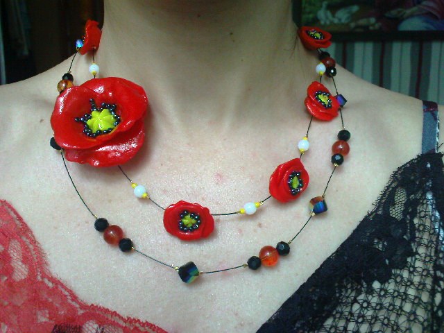 Бусики "Маки с бусинами Сваровски-60грн.... колеччко "Мак" -40 грн
